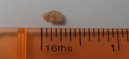 I visited my doctor a few days later and had x-rays and a CT scan. To my surprise the doctor said that he could see my nemesis, for it revealed itself on the CT scan and was 3 mm in length. I hurried home to inform my wife of our findings.